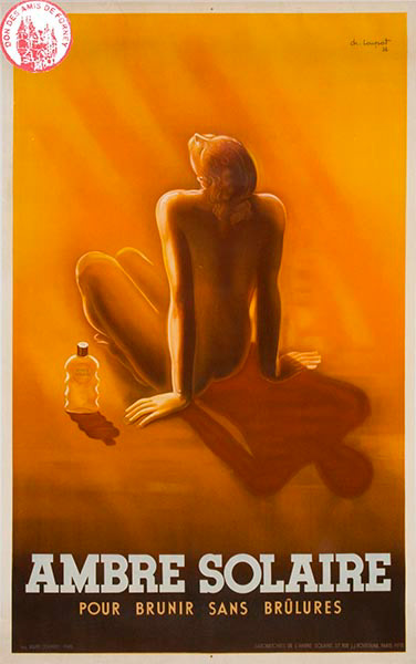 Don SABF - Ambre solaire, pour brunir sans brûlures Affiche lithographique 160 x 120 cm dessinée par Charles Loupot. Paris : Imp. Courbet, 1936