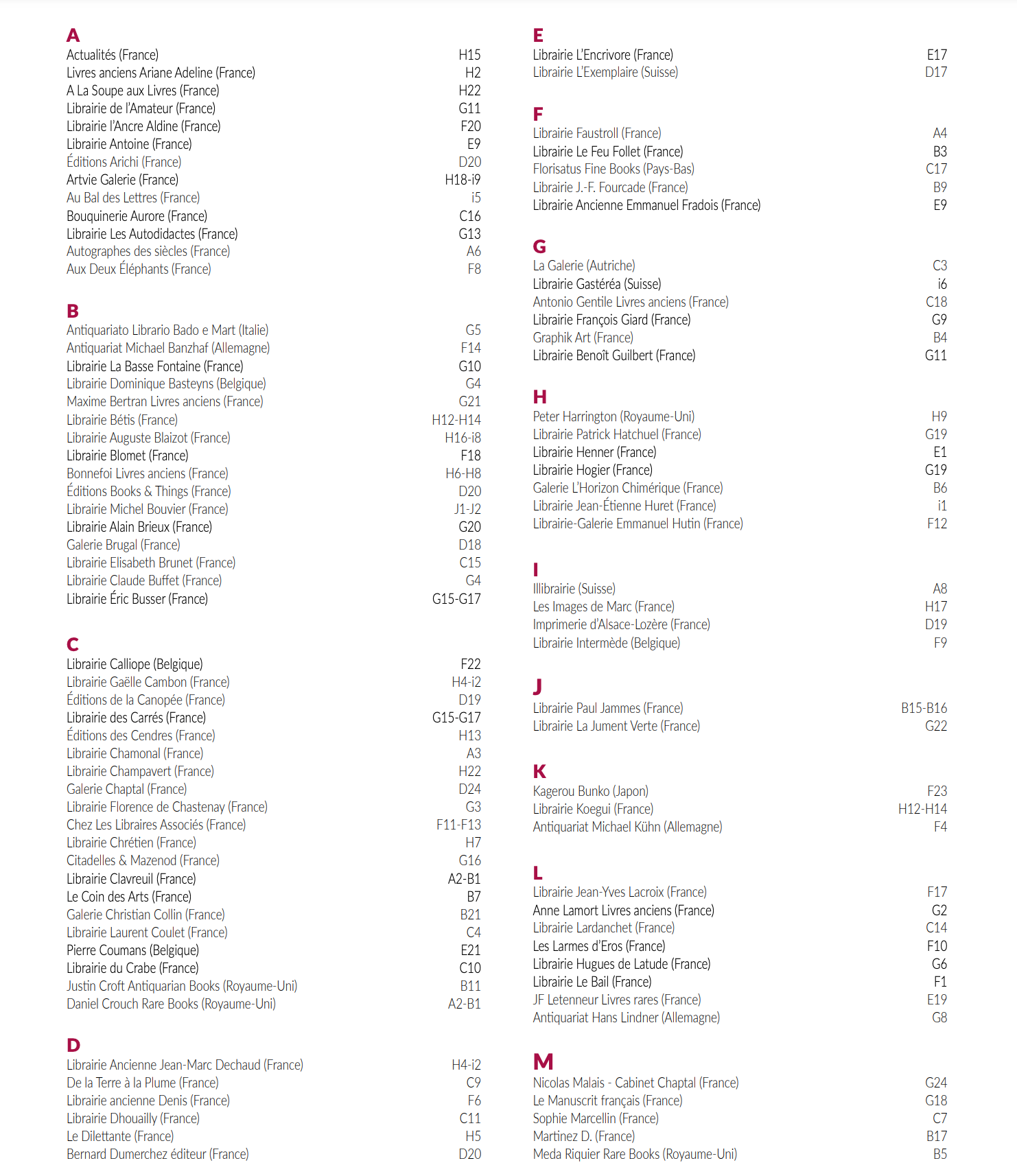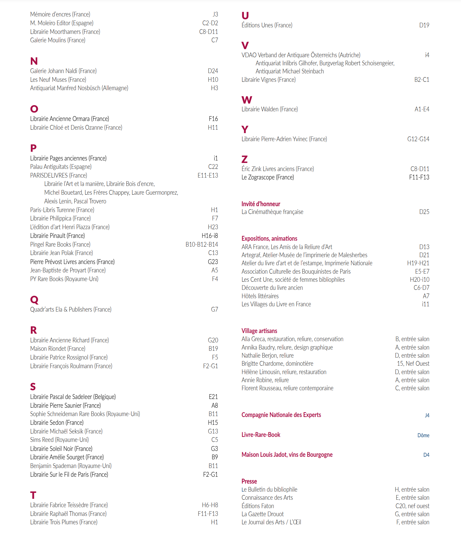 liste des exposants 2020